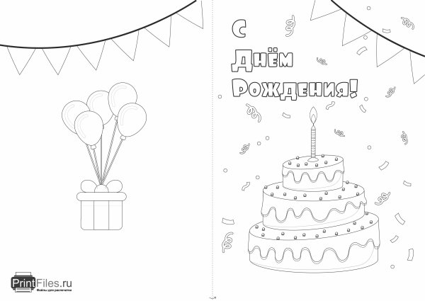 Открытка раскраска с днем рождения