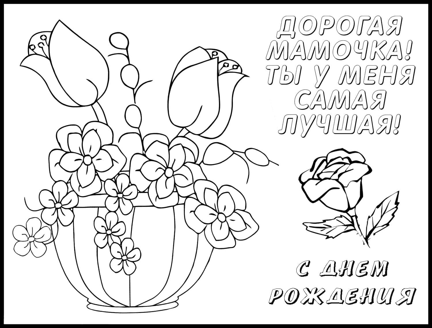 Раскраска с днем рождения мама
