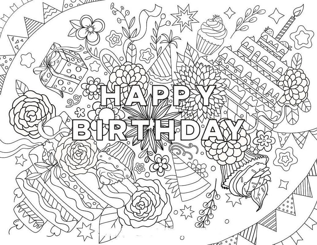 С дне рождения раскраска