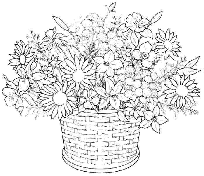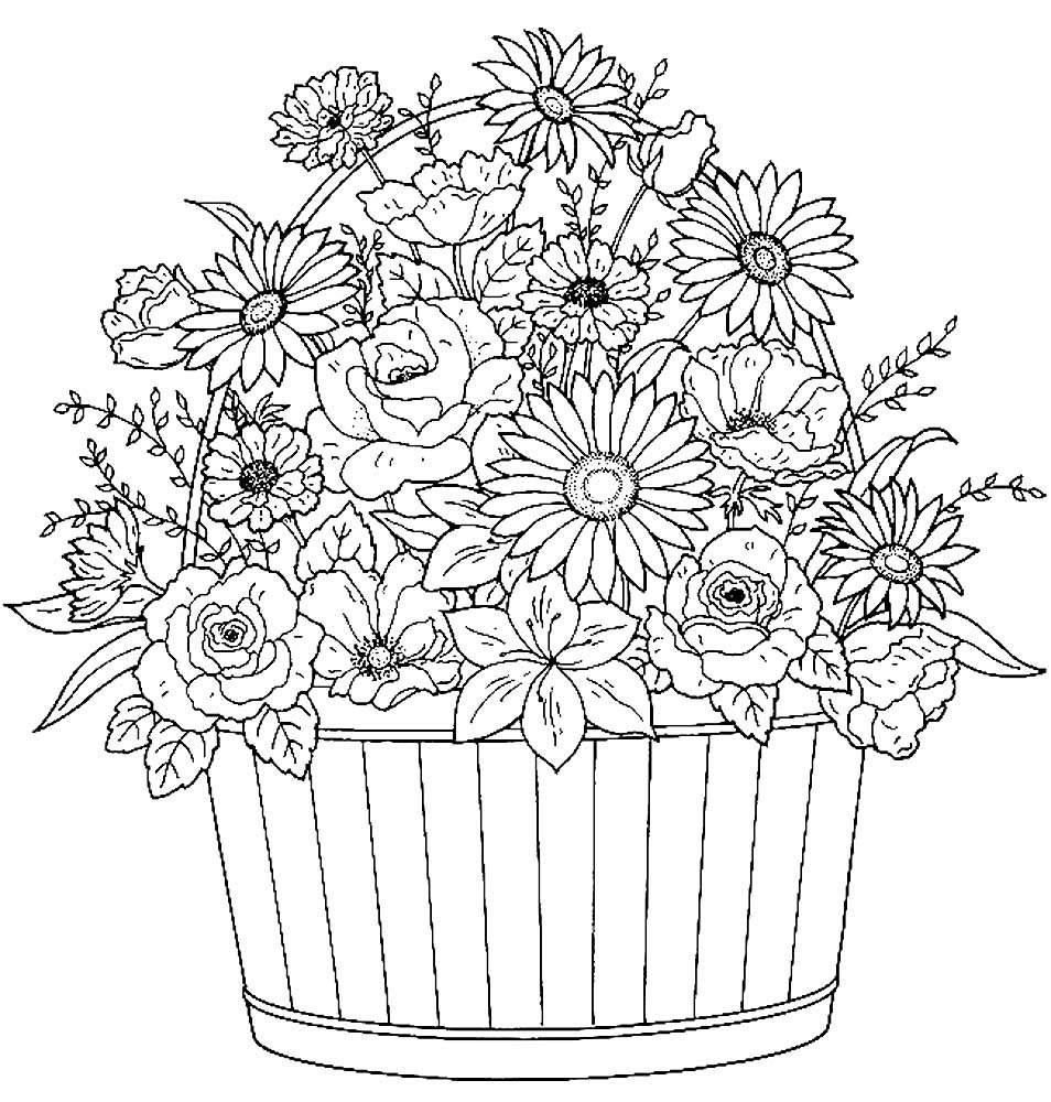 Раскраска цветы в корзине