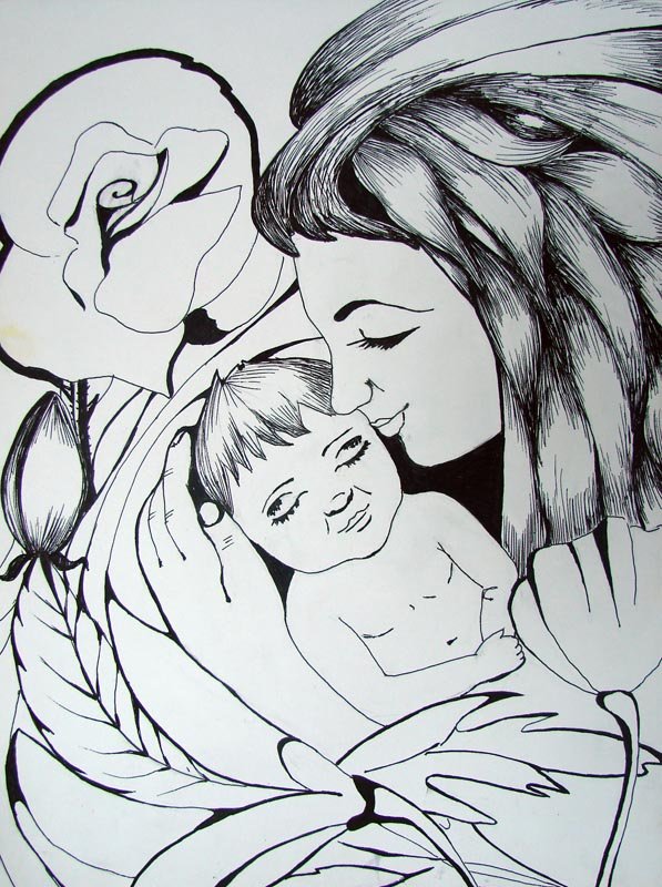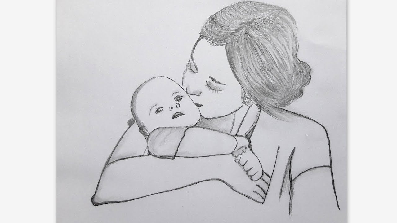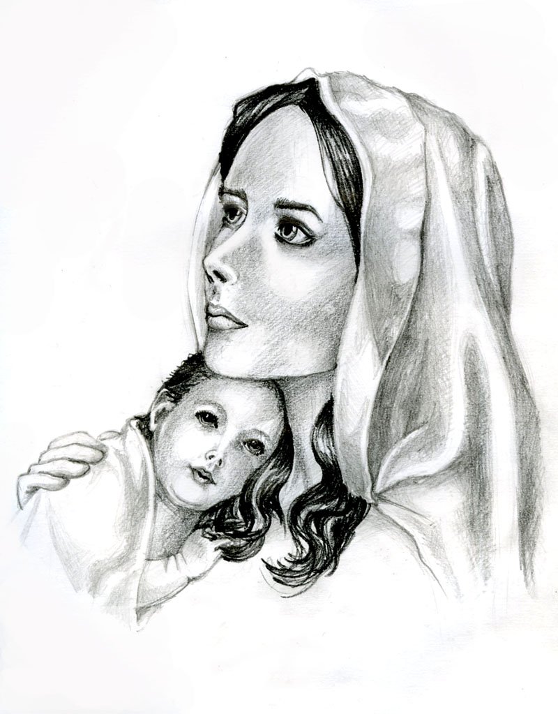 Мама с ребенком рисунок карандашом