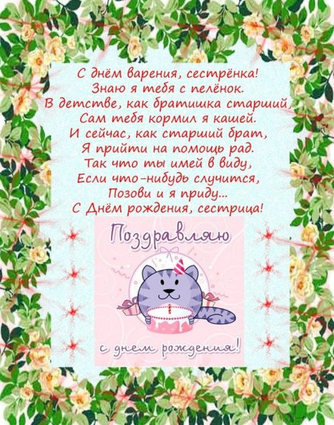 Поздравление сестре