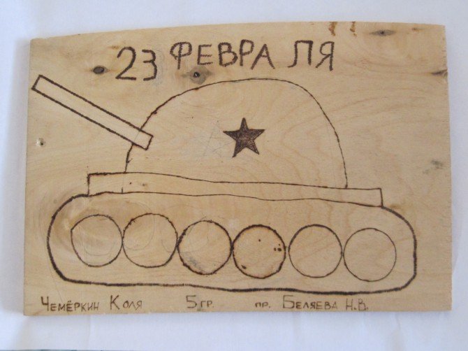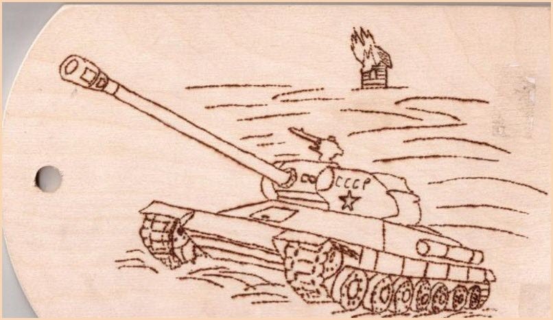 Выжигание по дереву танк