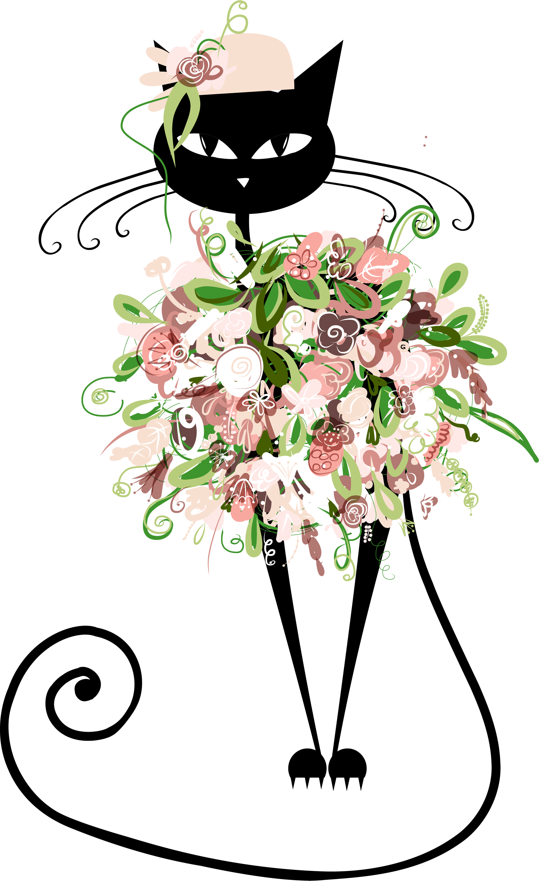 Черный кот с цветами