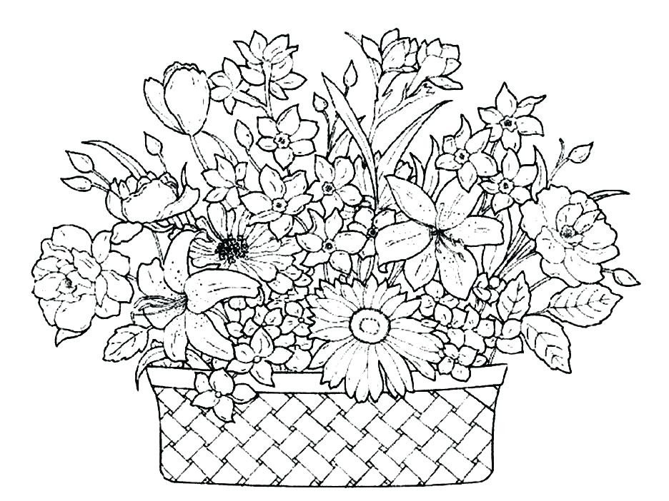 Раскраска цветы в корзине