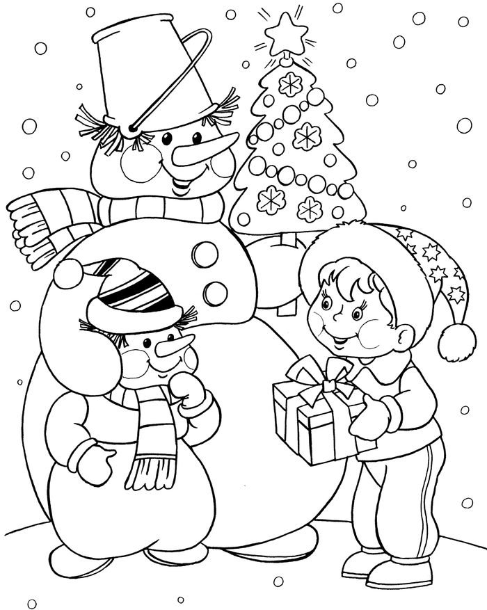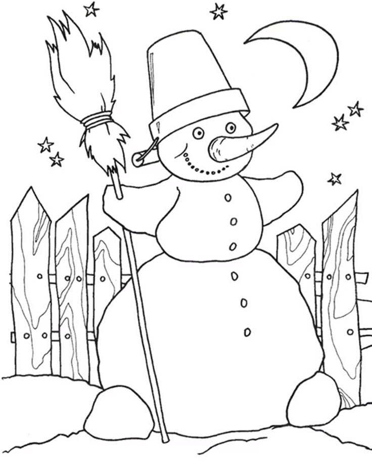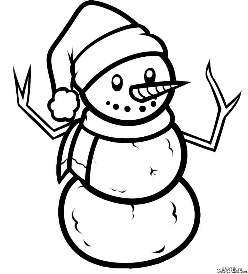 Зимние раскраски Снеговик