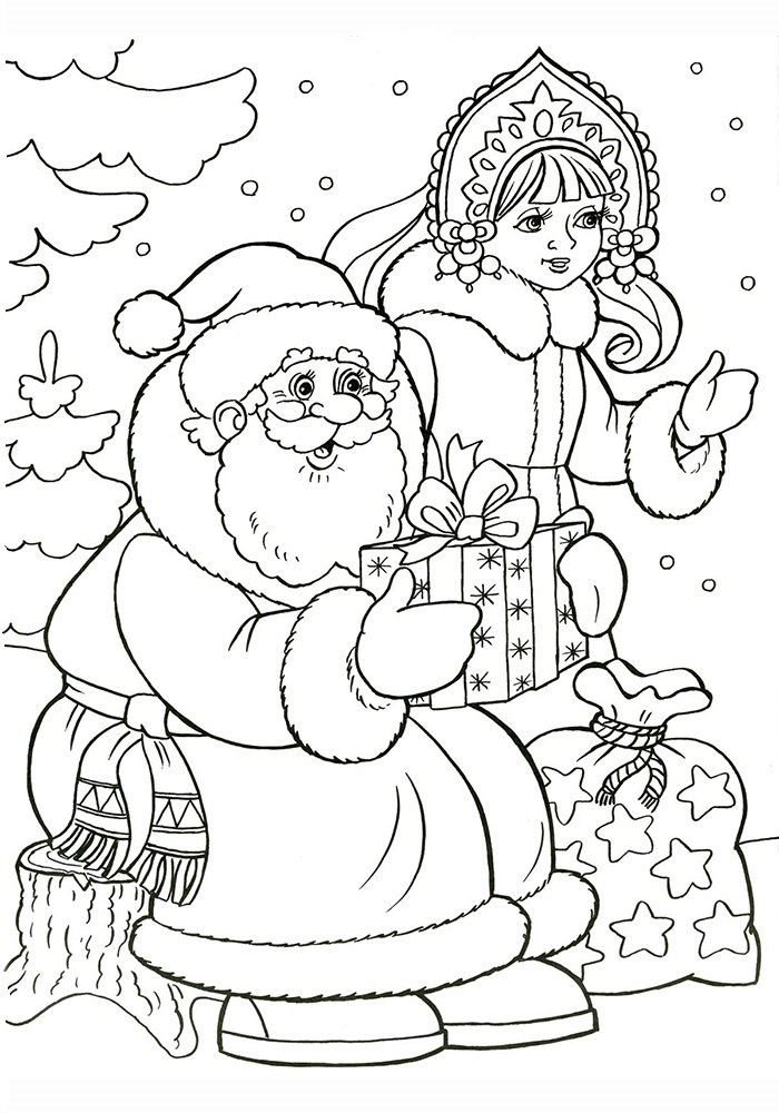 Раскраски Деда Мороза и Снегурочки