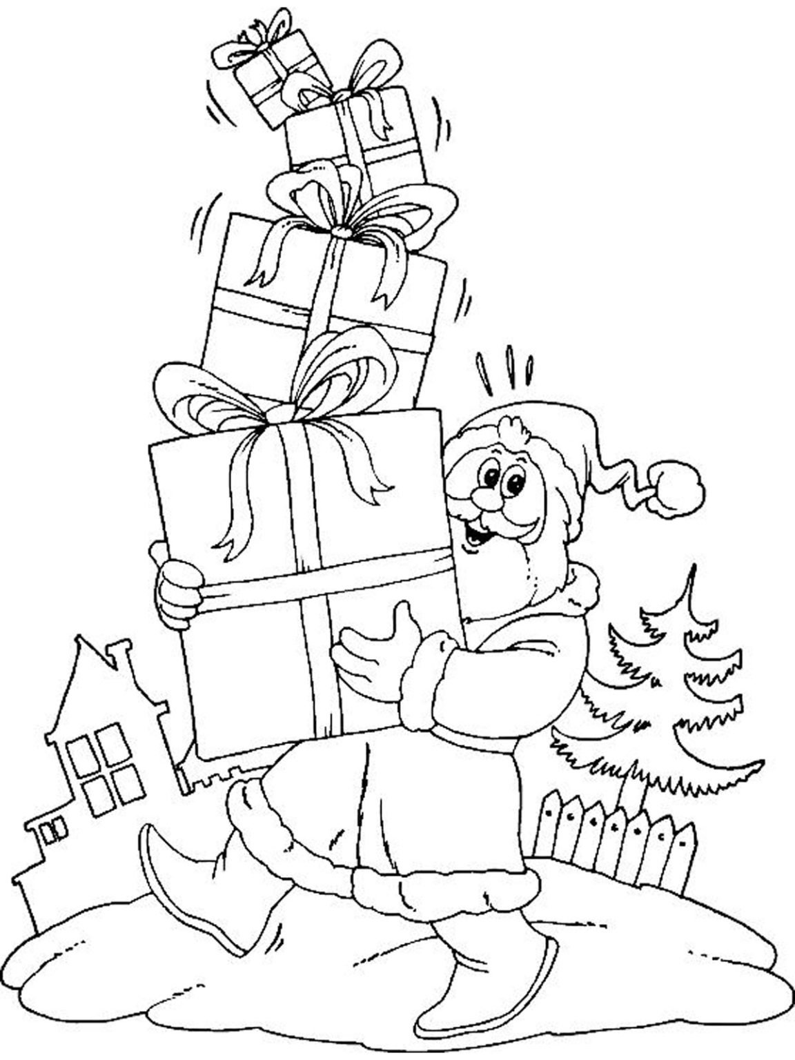 Санта Клаус с подарками раскраска