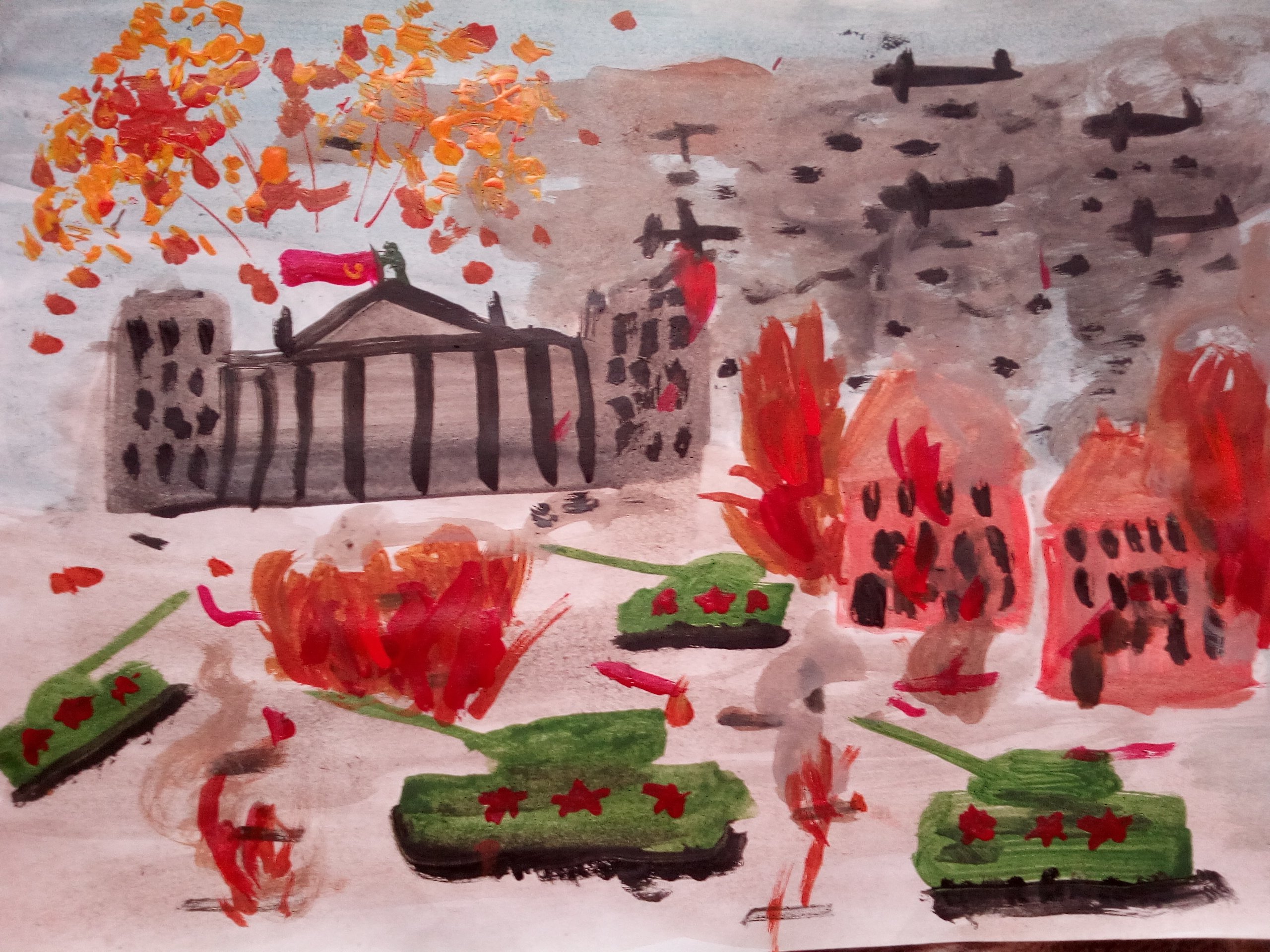 Военные рисунки гуашью