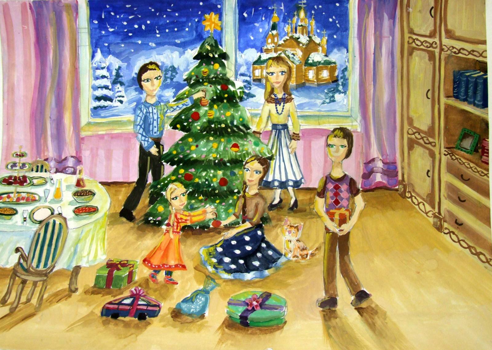 Волшебство праздника оживает на этом рисунке, где в ярких красках и деталях запечатлены радость, веселье и праздничное настроение. В центре внимания - счастливые люди, окруженные украшениями, подарками и символами праздника. Яркие огоньки, сияющие звезды и мерцающие огни создают атмосферу волшебства и ждут своих гостей. Этот рисунок полон энергии и радости, он приносит вам чувство праздника и напоминает о том, что самое ценное в жизни - это время, проведенное в кругу близких людей, в радости и веселье.