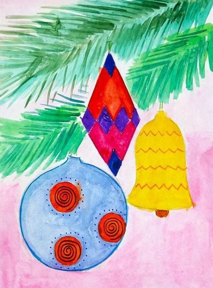 ![Новогодние игрушки детские рисунки]()