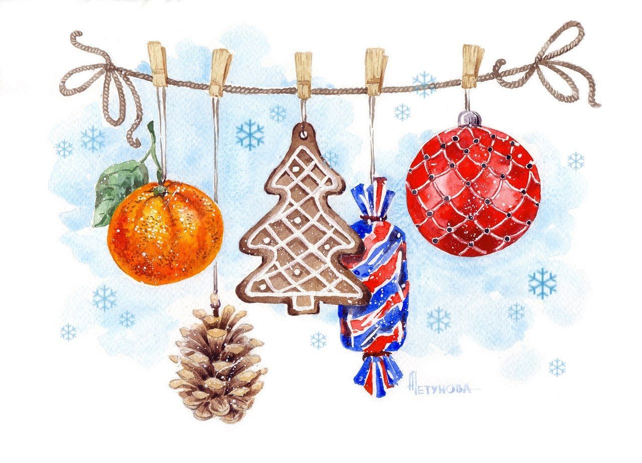 ![Новый год акварель]()