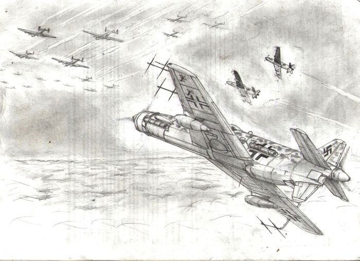 Военный самолет карандашом