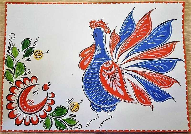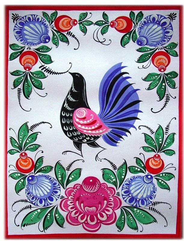 Городецкая роспись элементы птицы
