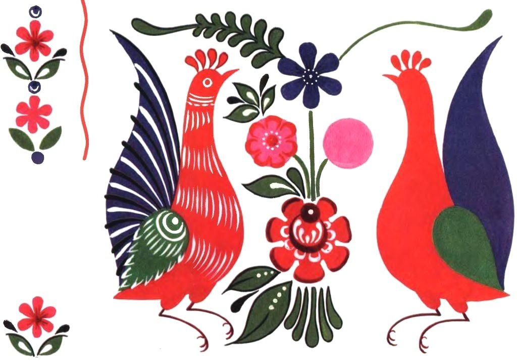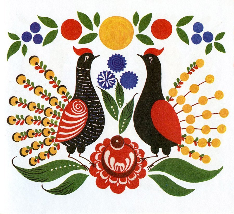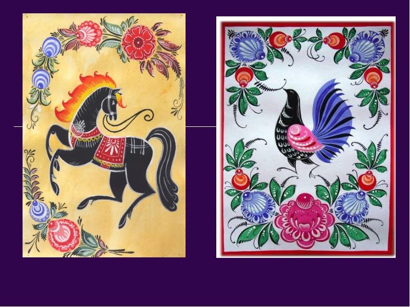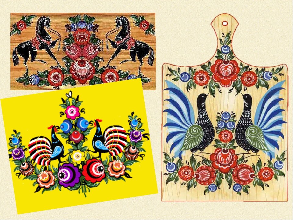 ![Городецкая роспись зооморфные мотивы]()