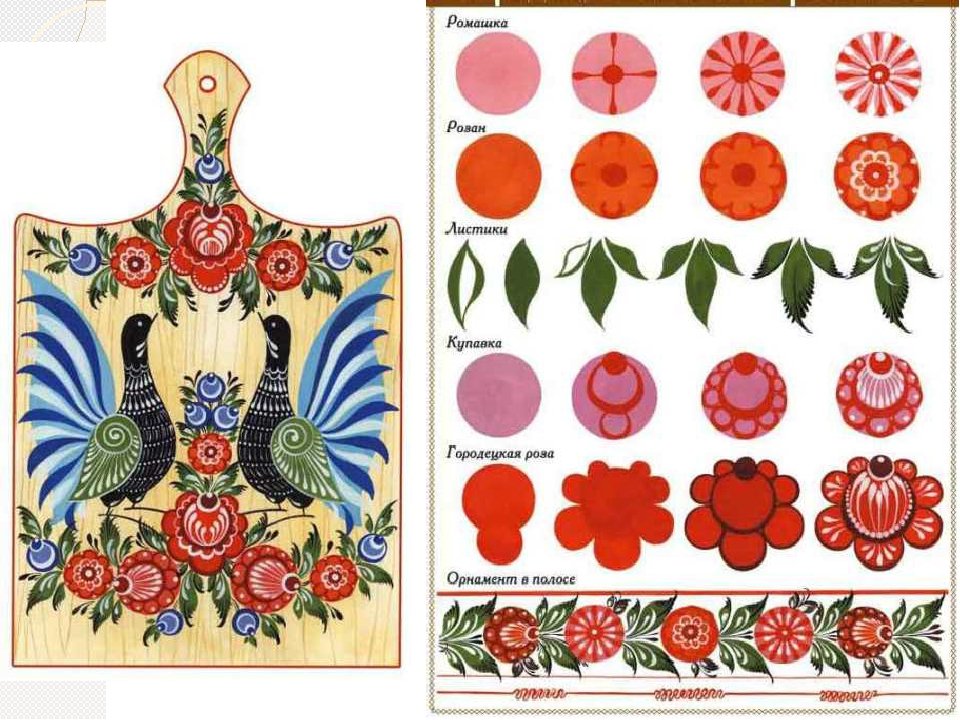 ![Городецкая роспись элементы росписи]()