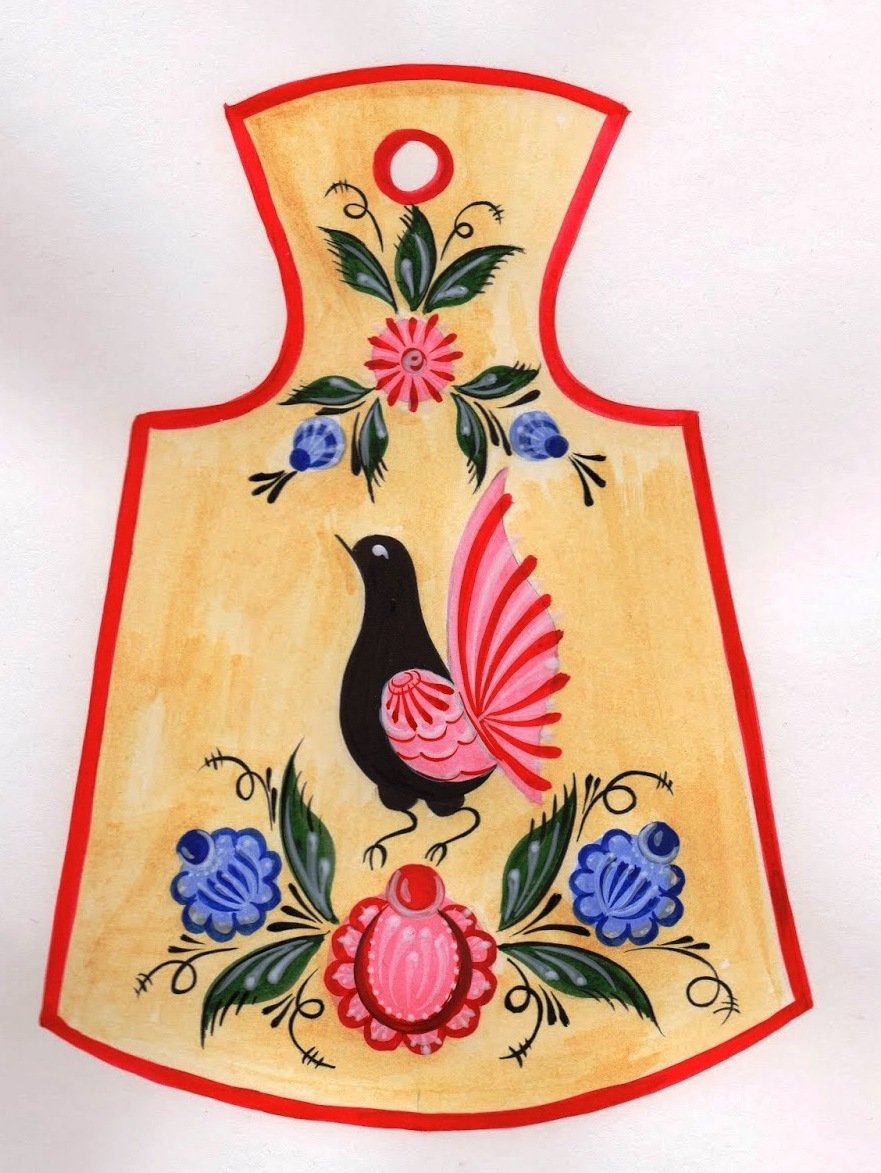 ![Городецкая роспись доска нарисовать]()
