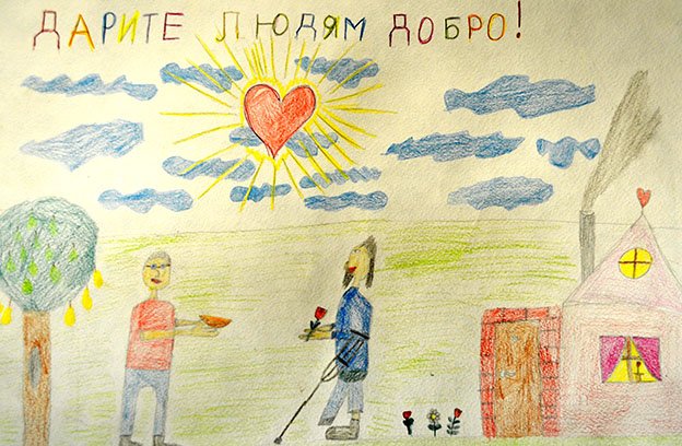 Наши дни наполнены суетой и стрессом, но всегда найдется место для доброты в нашей жизни. Рисунок на тему "Дари добро" призывает нас задуматься о значимости маленьких актов доброты, которые мы можем сделать другим людям. На рисунке изображена улыбающаяся девочка, которая подает цветок прохожему. Ее доброе желание передается через этот простой жест, что вызывает радость и благодарность у человека, получившего цветок. Это напоминает нам, что каждый из нас имеет возможность делиться добротой и создавать позитивные моменты в жизни других людей. Поэтому, несмотря на все повседневные заботы, давайте не забудем дарить добро и делать мир ярче одним актом за раз.