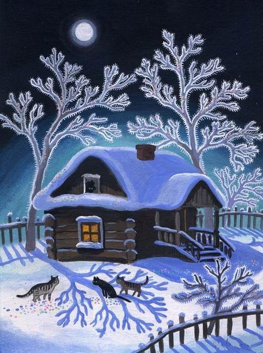 Зимний вечер рисование
