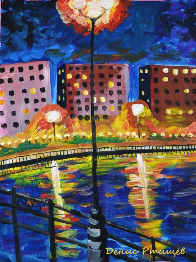 Ночной город гуашью