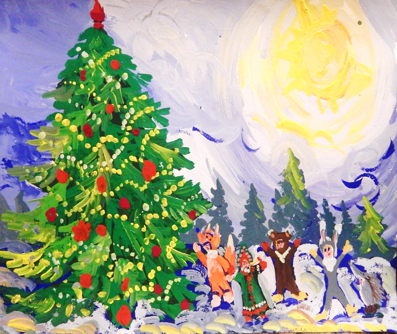 ![Детский рисунок новый год]()
