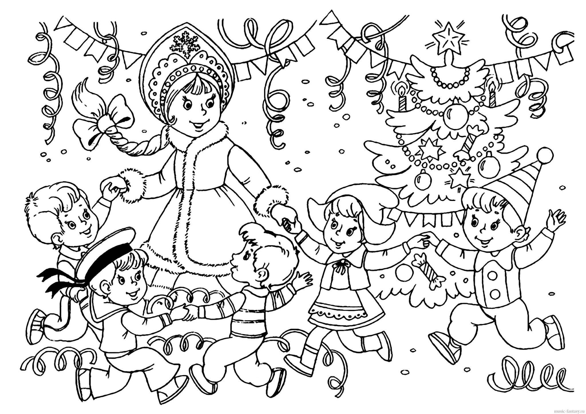 ![Новогодний праздник раскраска для детей]()