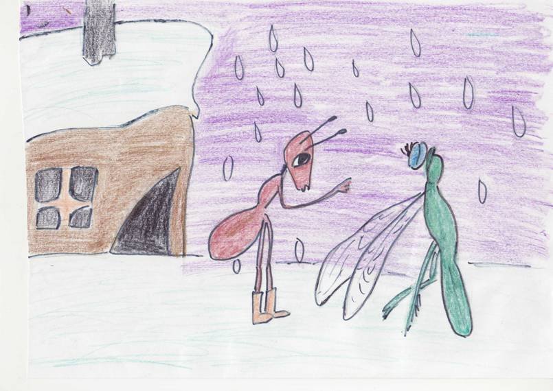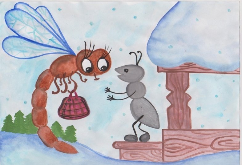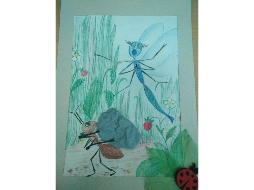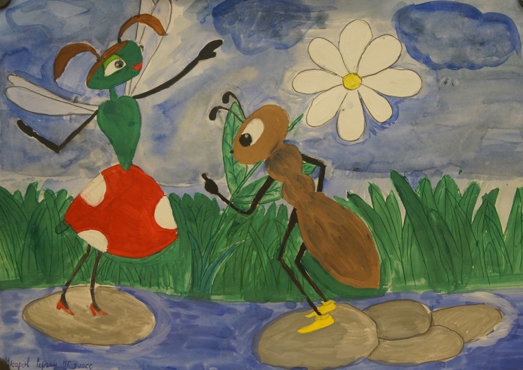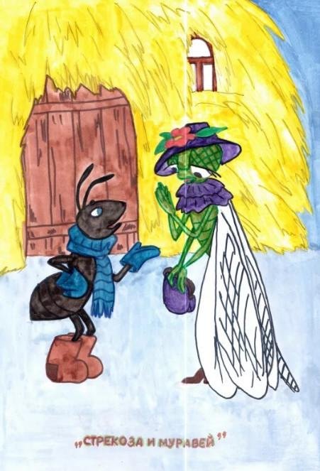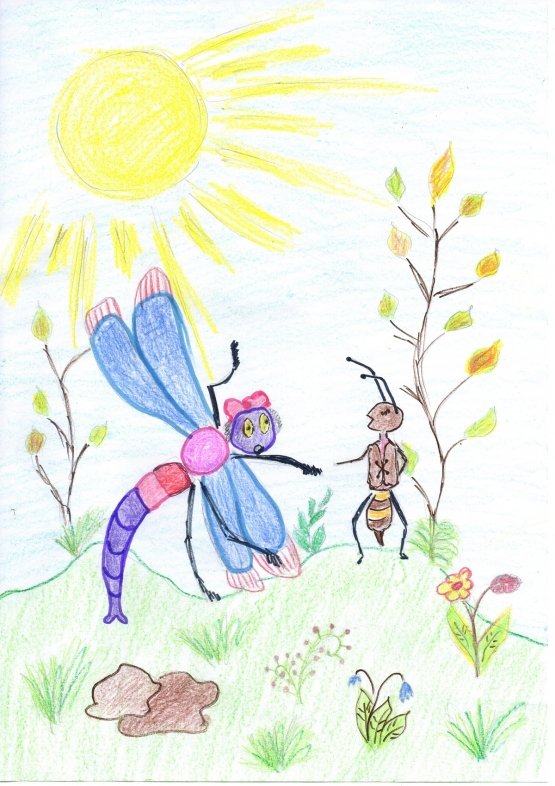 ![Стрекоза и муравей рисунки детей]()