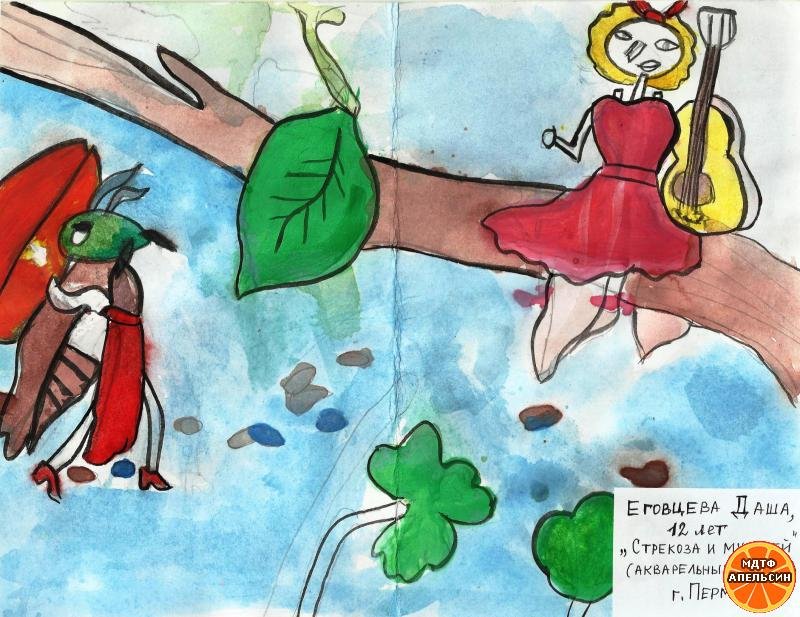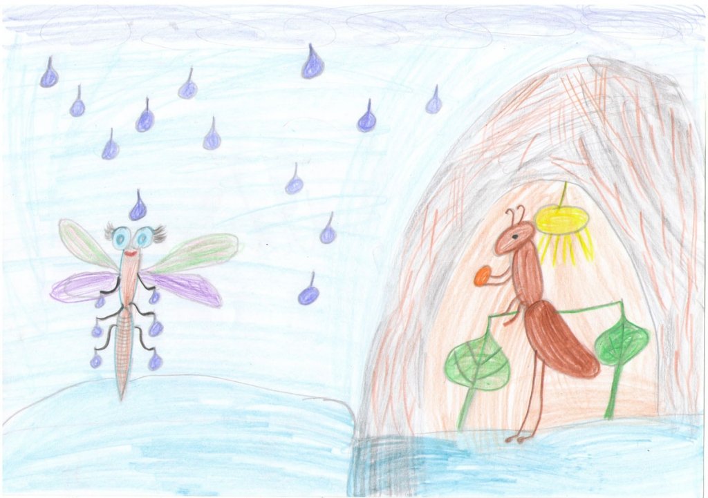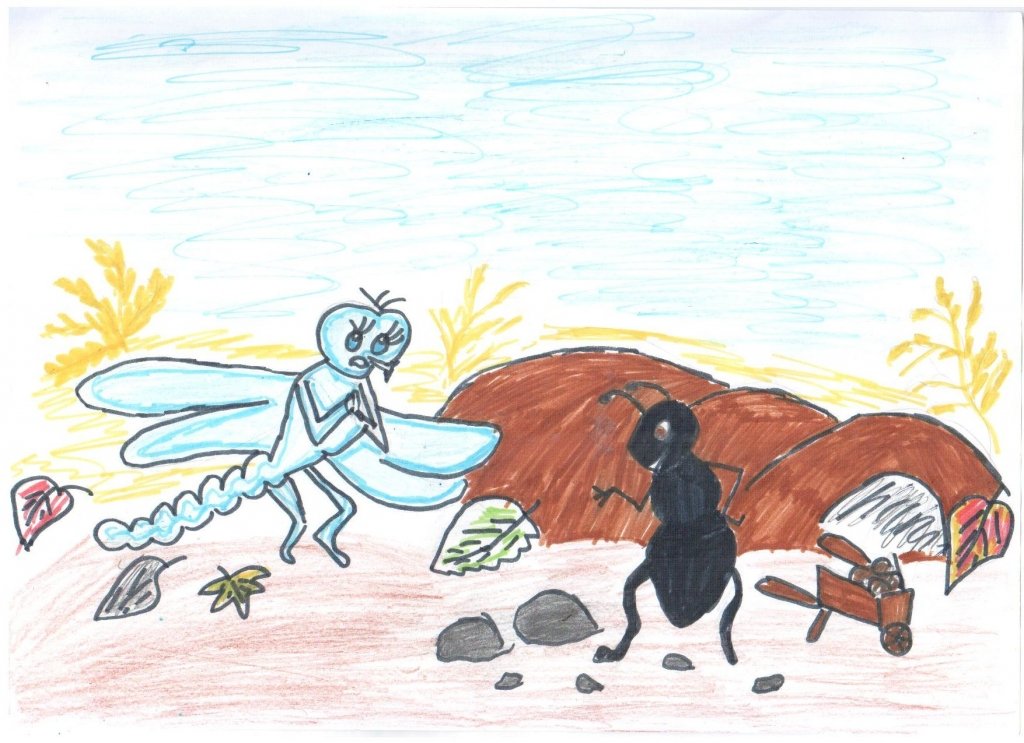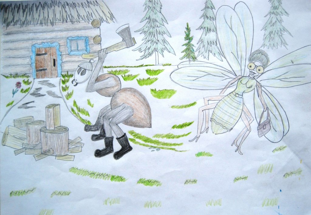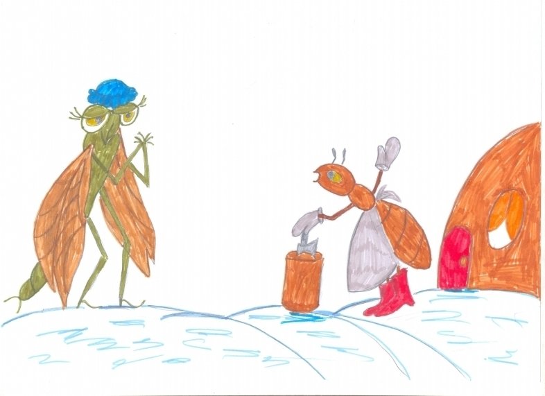 ![Стрекоза и муравей рисунки детей]()