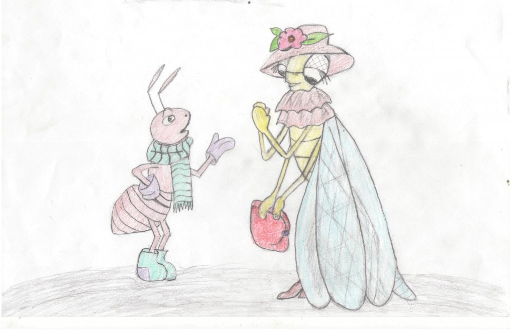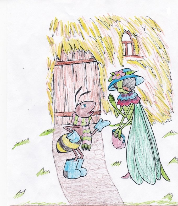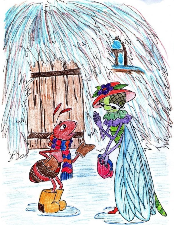 ![Стрекоза и муравей рисунок]()