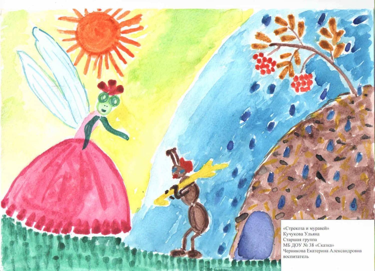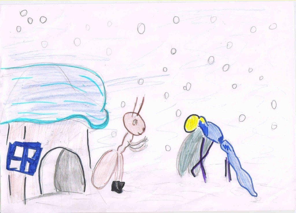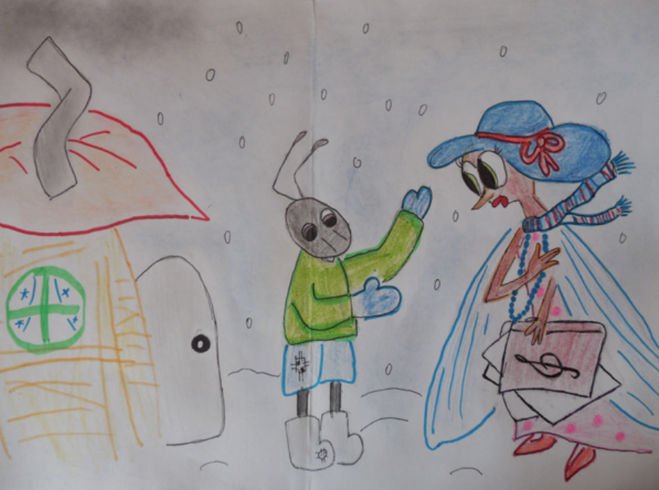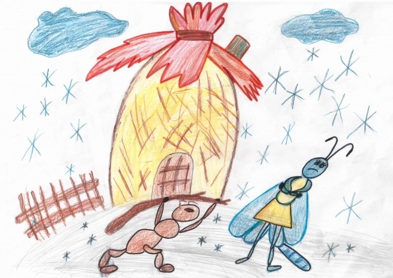 Детские рисунки к басне Стрекоза и муравей