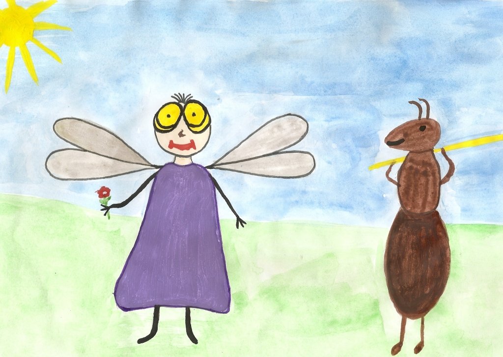 Стрекоза и муравей рисунок детский