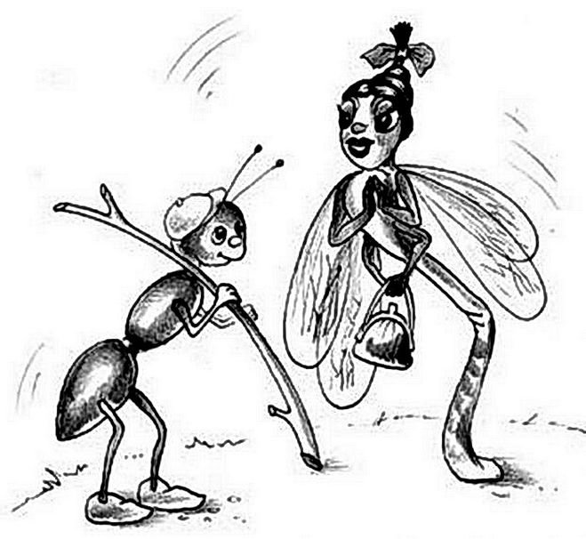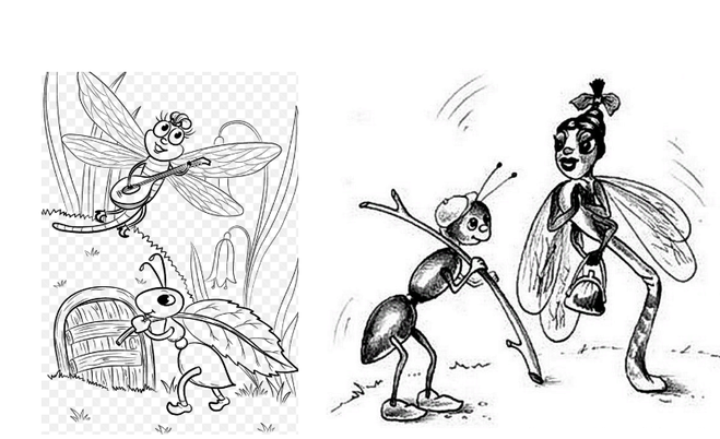 Рисунки к басне Стрекоза и муравей для детей