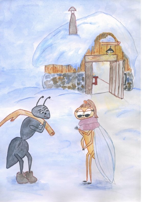 ![Детские рисунки к басням Крылова Стрекоза и муравей]()