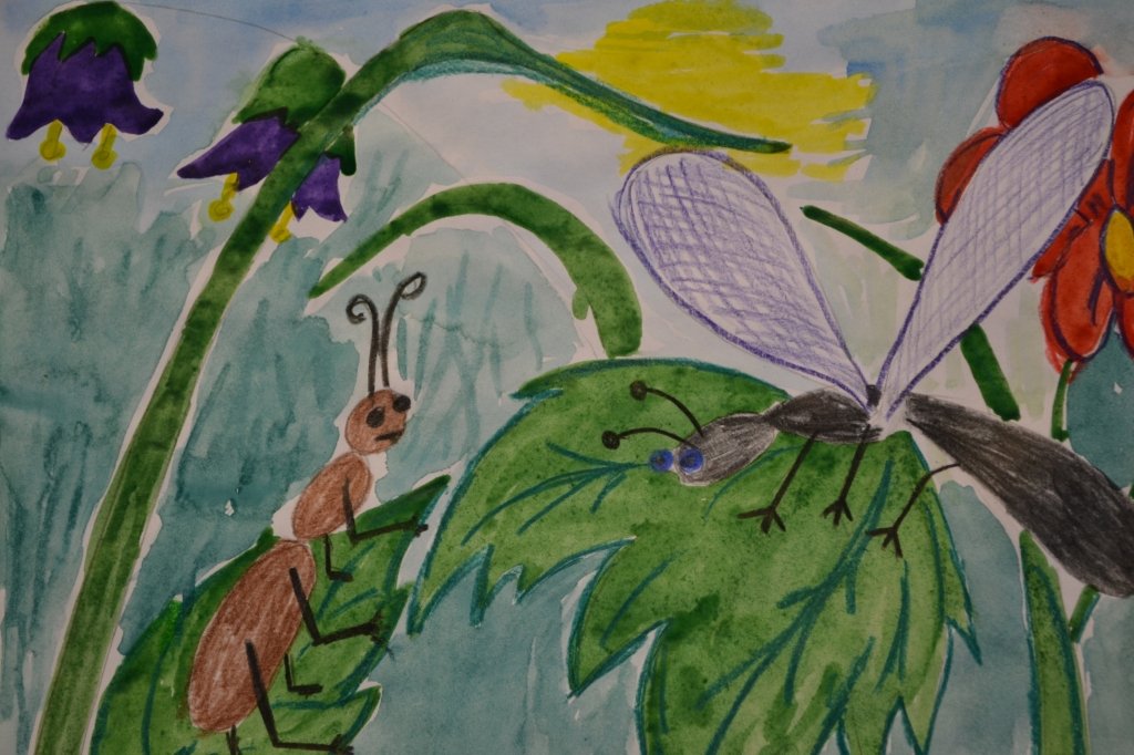 Стрекоза и муравей рисунки детей