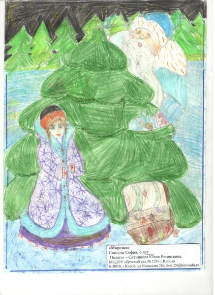 ![Детские рисунки к сказке Морозко]()