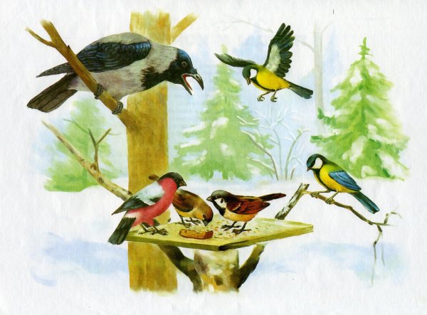 ![Зимующие птицы рисунок]()