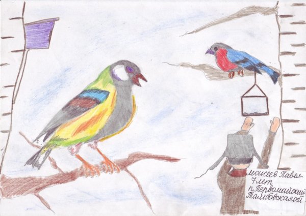 Рисунок зимующие птицы на конкурс