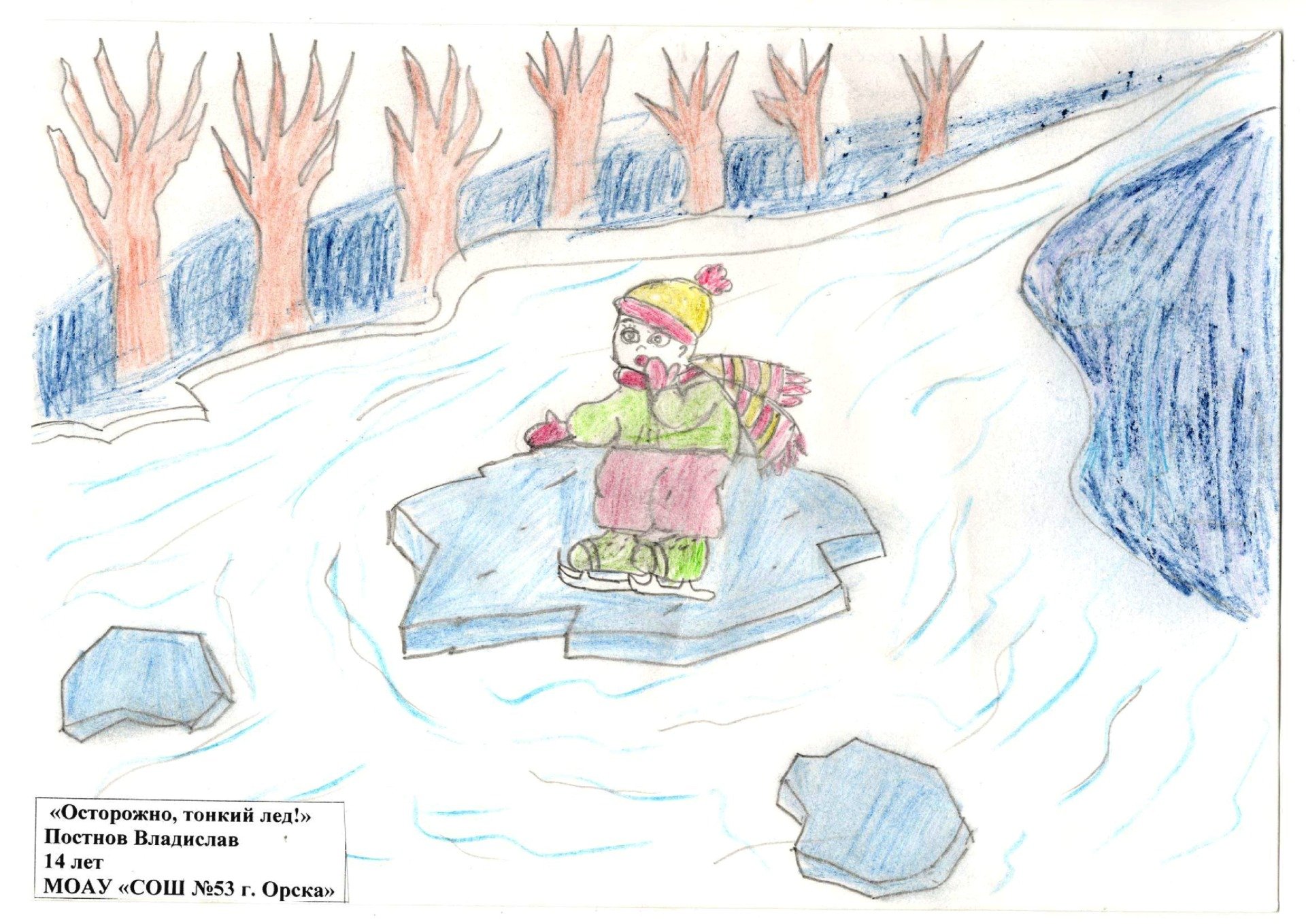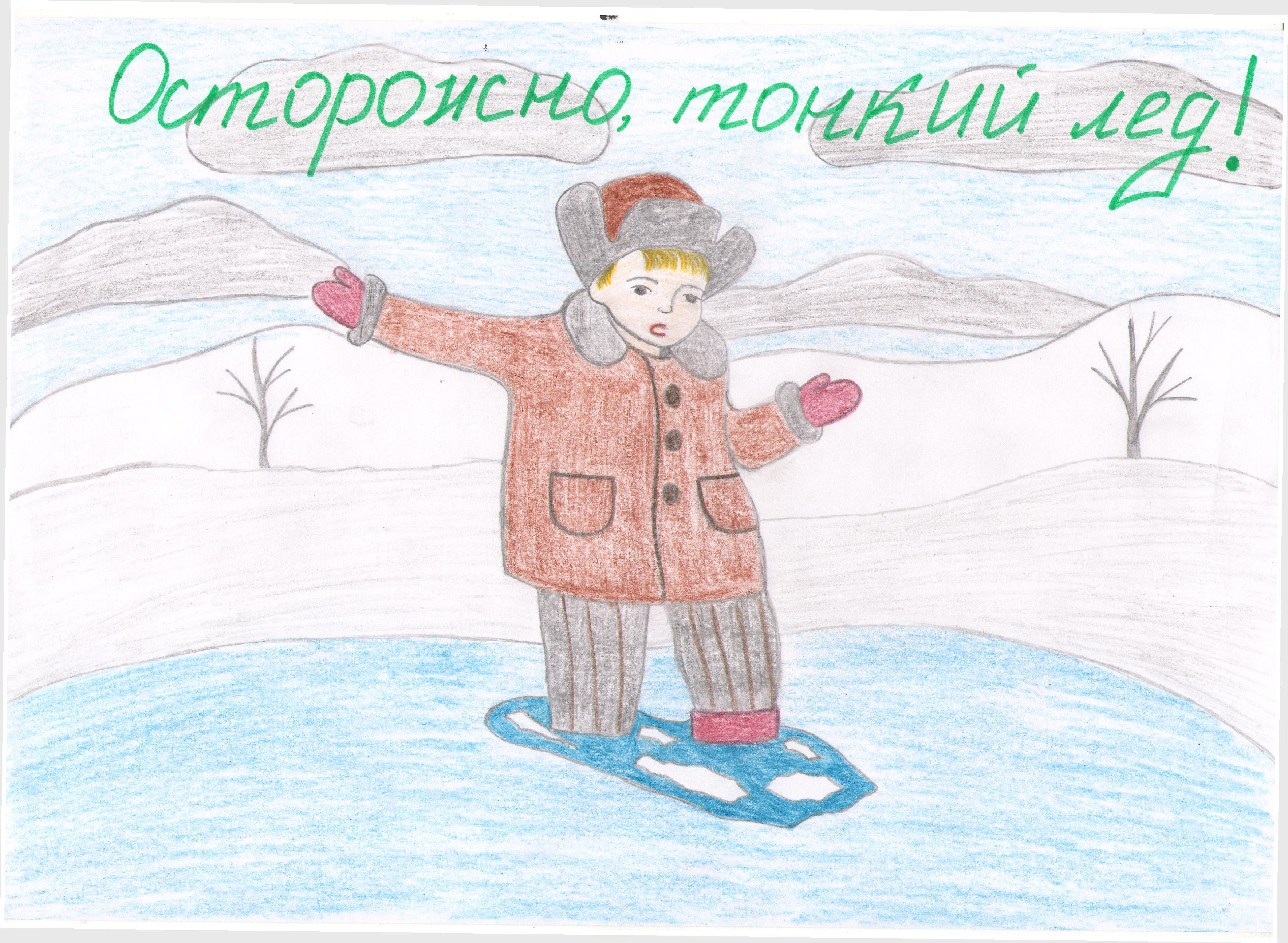 Осторожно тонкий лед рисунок на конкурс