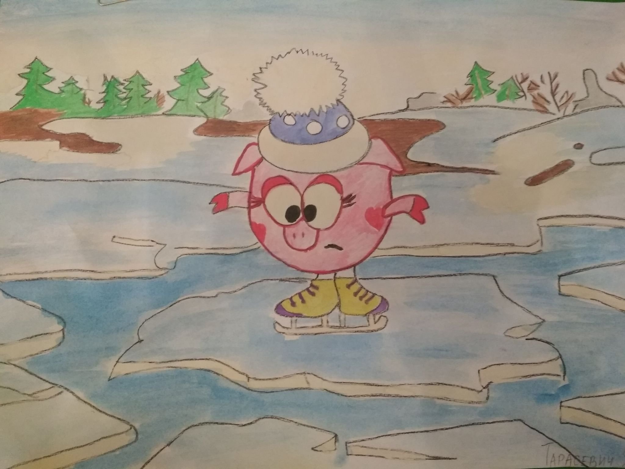 Рисунок на тему осторожно тонкий лед