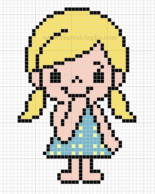 ![Рисунки по клеточкам девушки]()