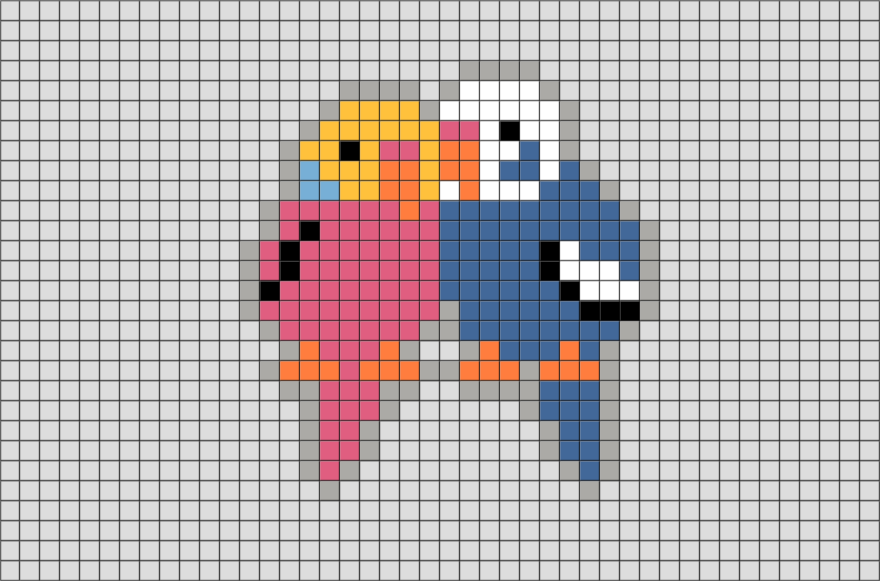 ![Попугай по клеточкам]()
