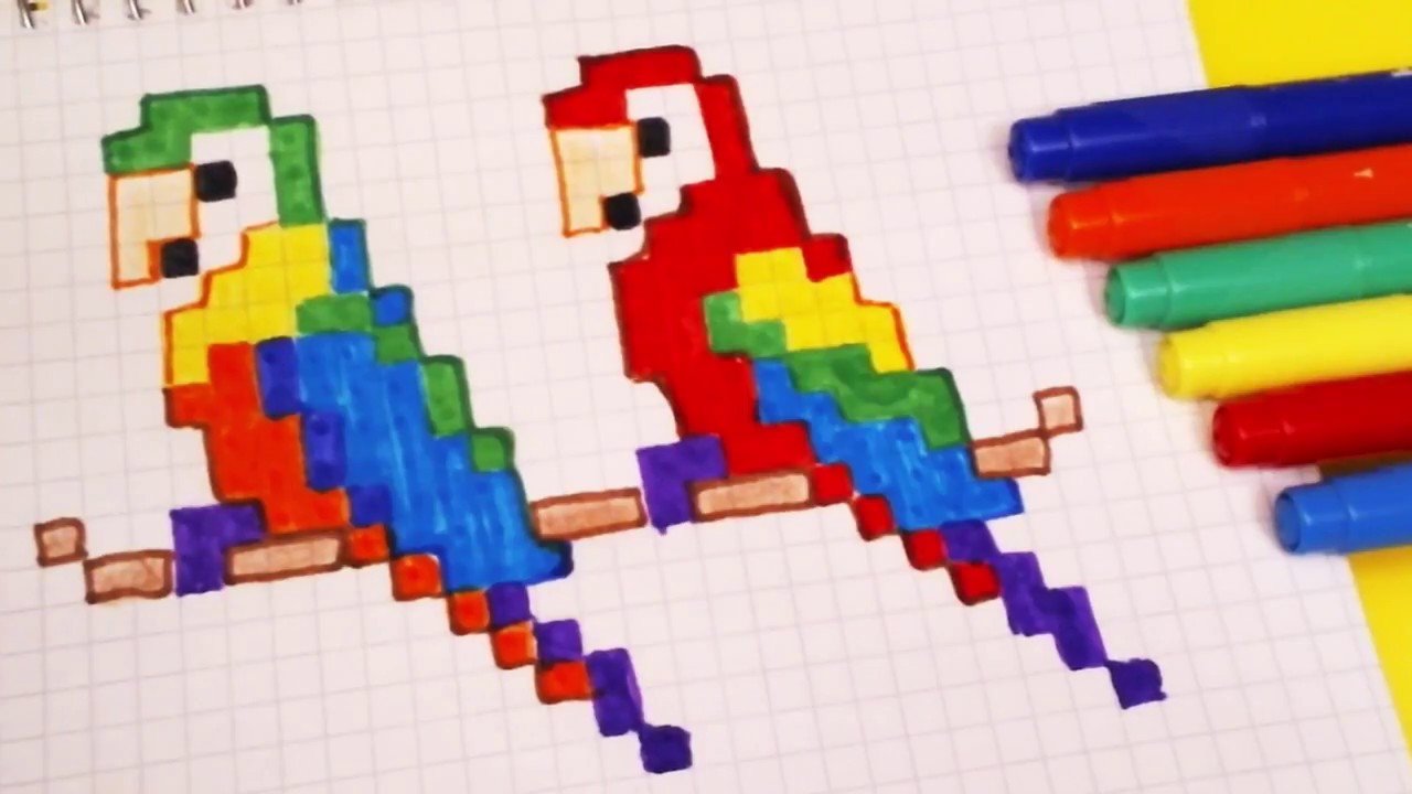 ![Рисование по клеточкам попугай]()