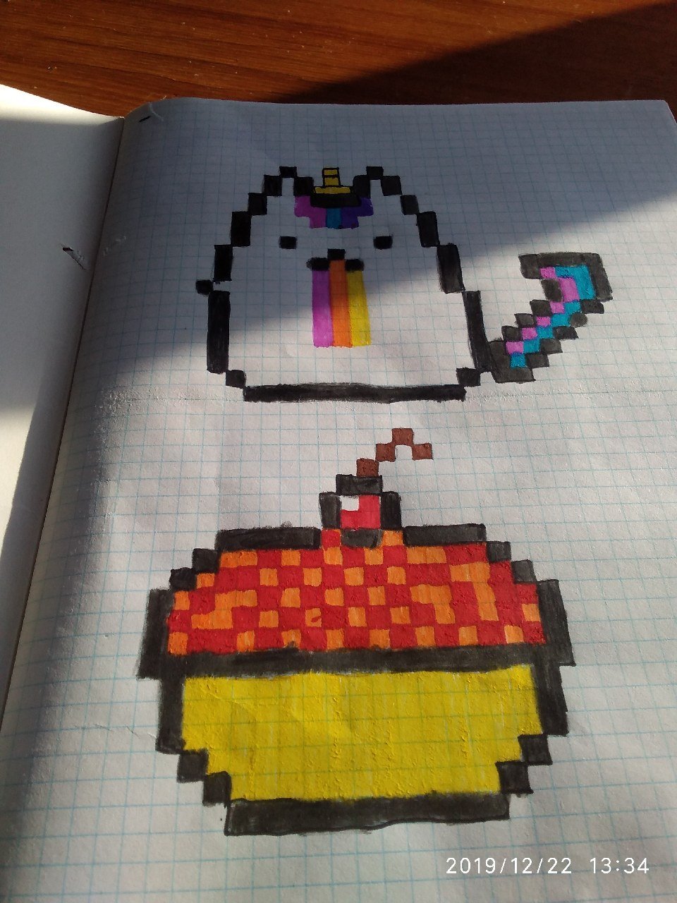 ![Рисунки по клеточкам Cuphead в тетради]()