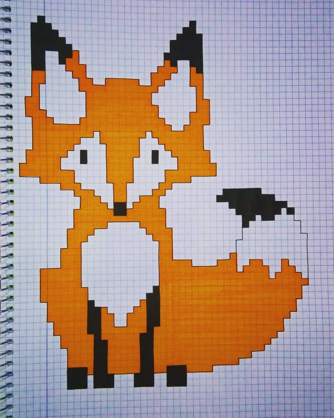 Лиса по клеточкам в тетради