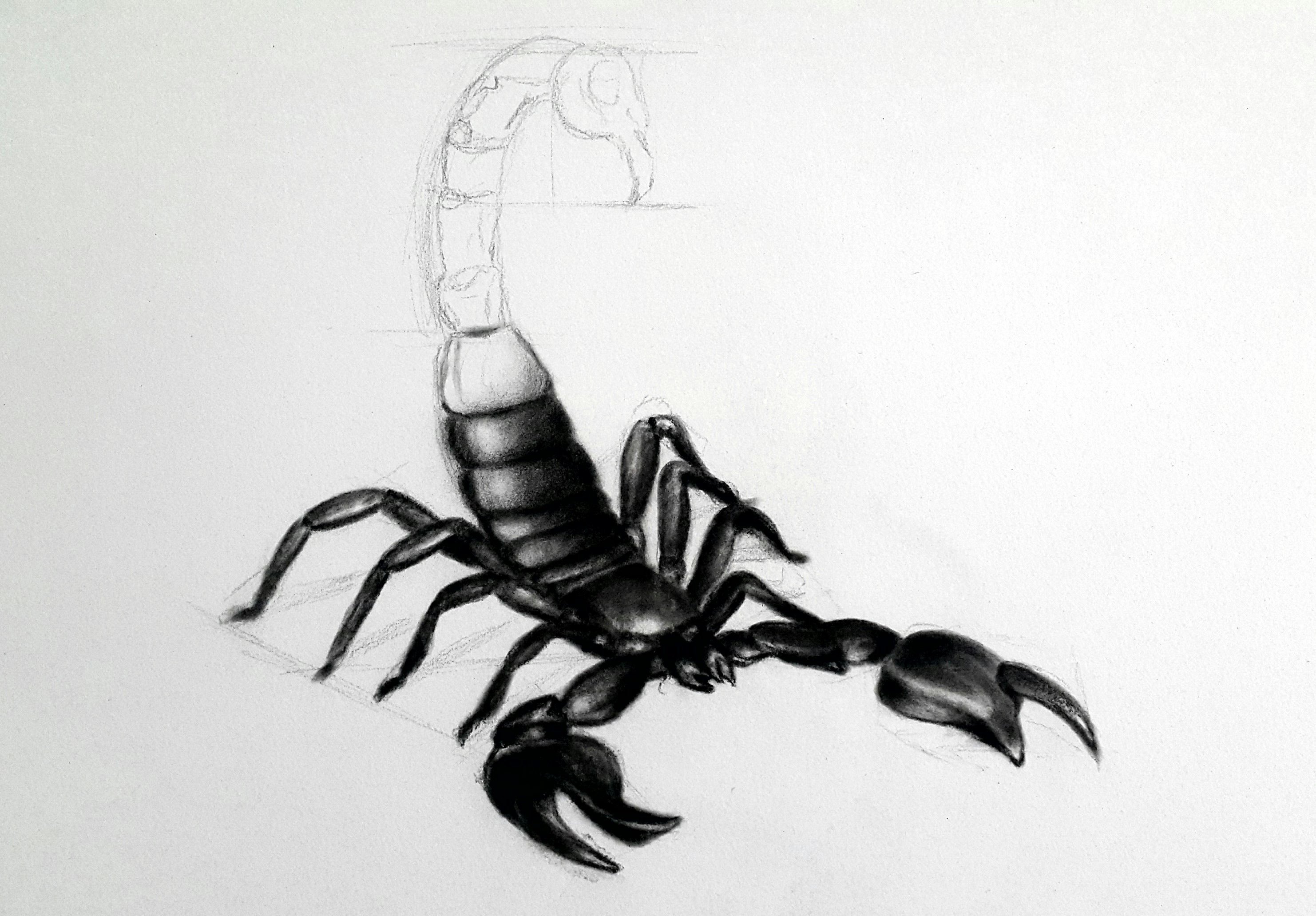 Скорпион рисунок карандашом для начинающих