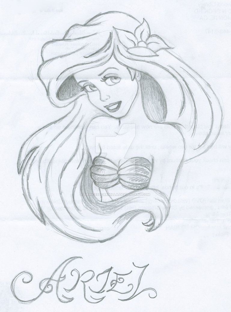 ![Ариэль карандашом для срисовки]()