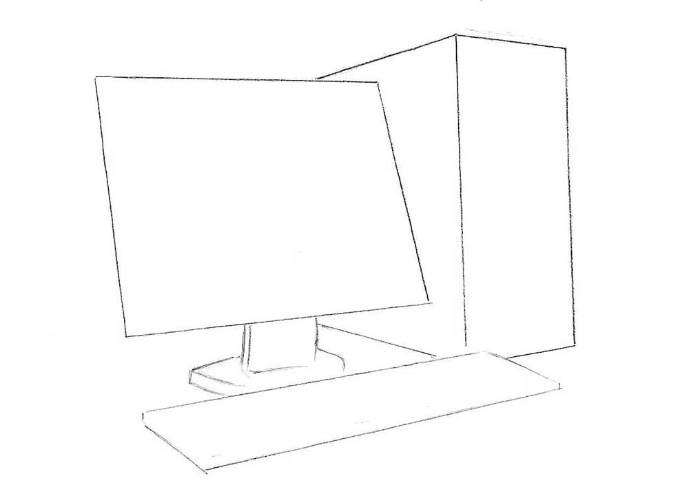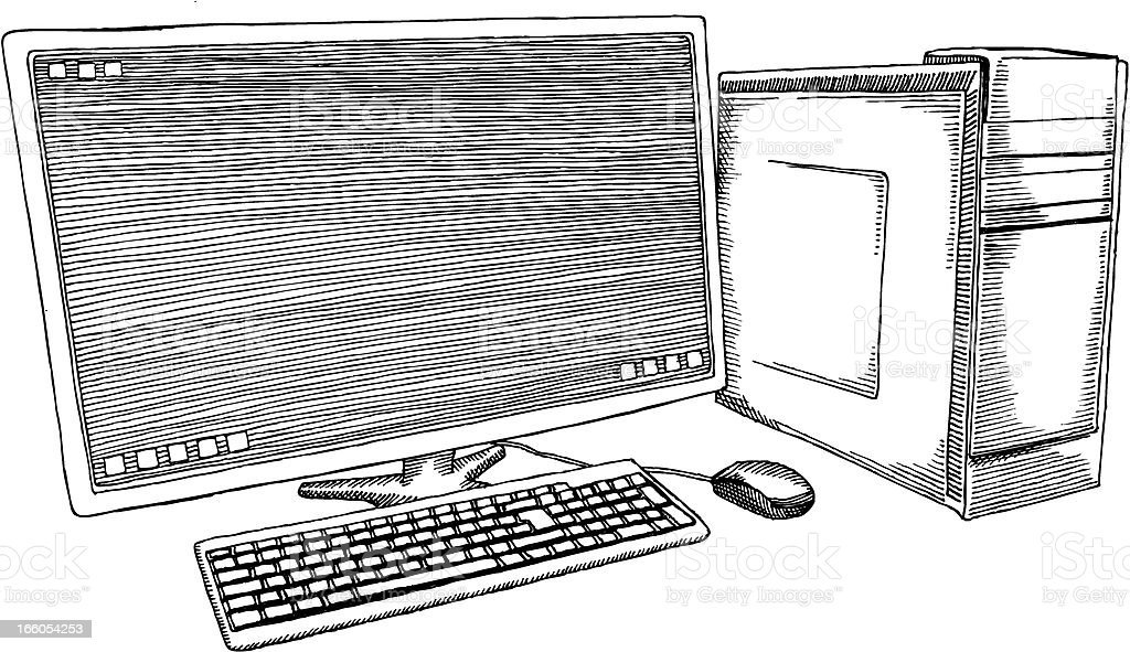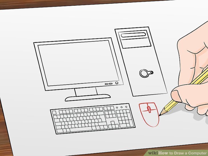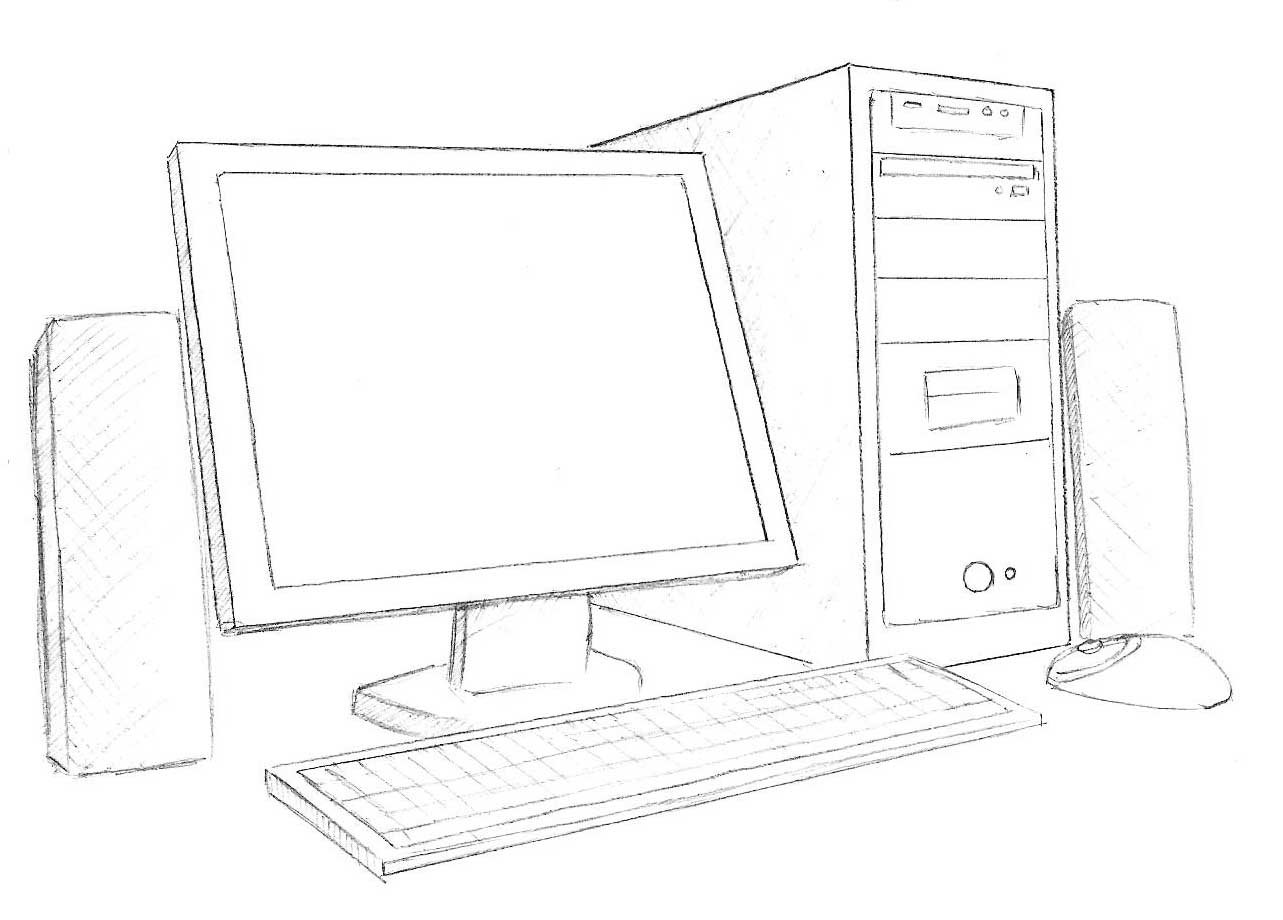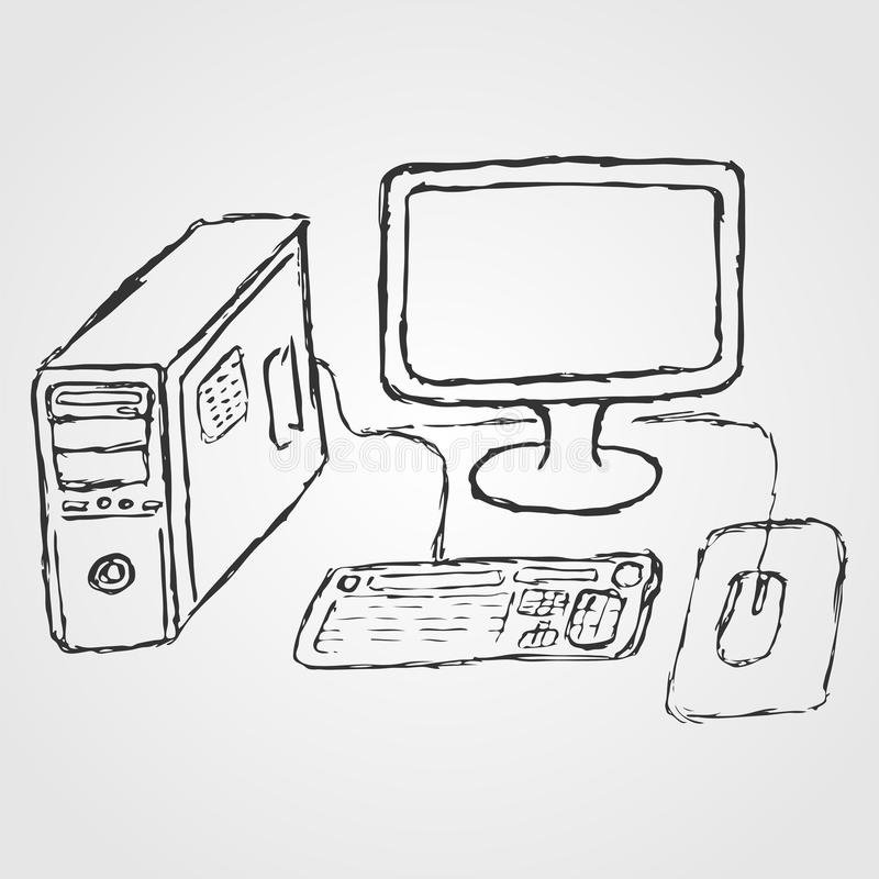 ![Компьютер с клавиатурой и мышкой в карандаше]()