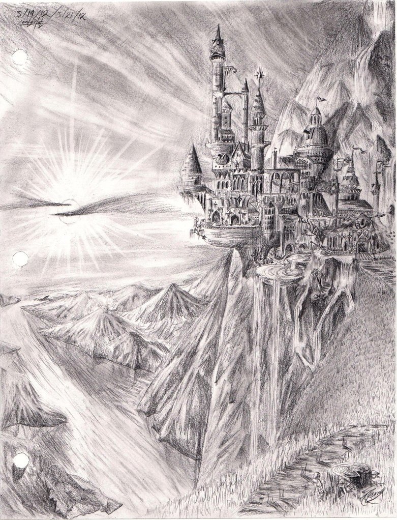 Фантастический пейзаж карандашом