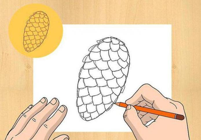 ![Кедровая шишка карандашом]()