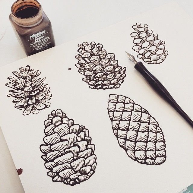 ![Шишка эскиз в карандаше]()
